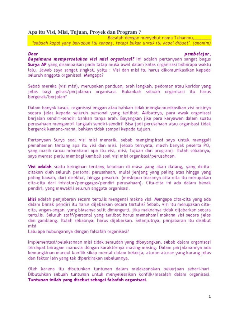 Visi Misi Apa Itu Achmad S Ruky