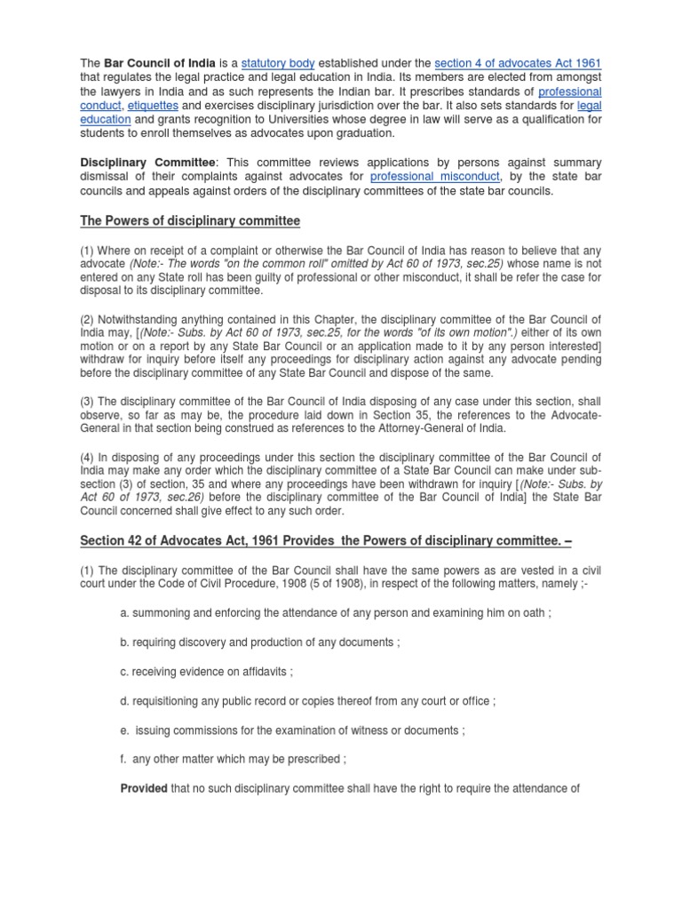 Powers Of Disciplinary Cimmittee Docx Advocate Separation Of Powers