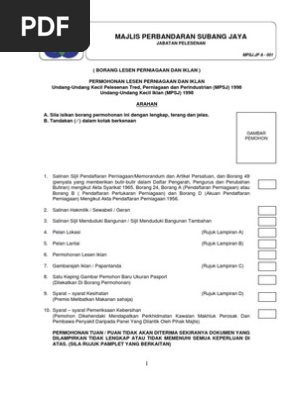 Borang Permohonan Lesen Premis Perniagaan Pdf Document
