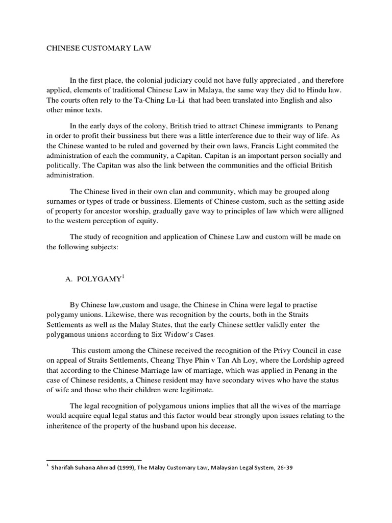 Chinese Hindu And Malay Customary Law Introduction To Law Studocu