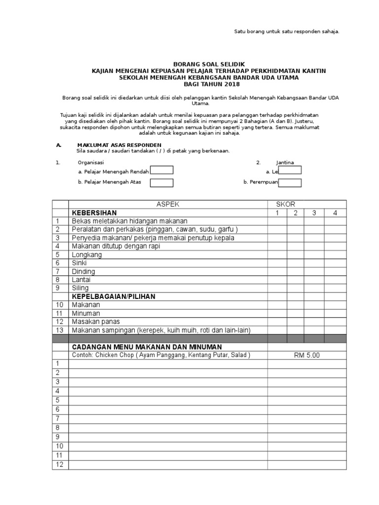 Contoh Borang Kaji Selidik Survey Cute766