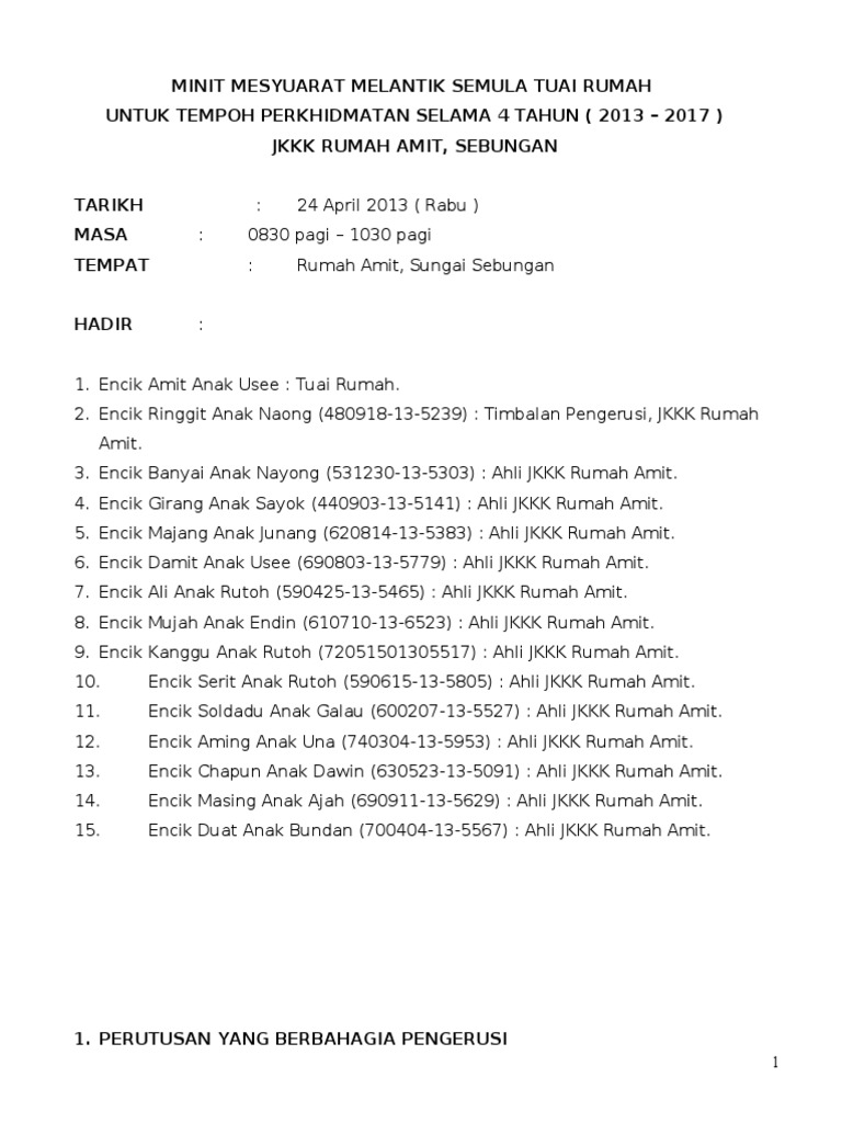 Contoh Minit Mesyuarat Jkkk Rumah Panjang