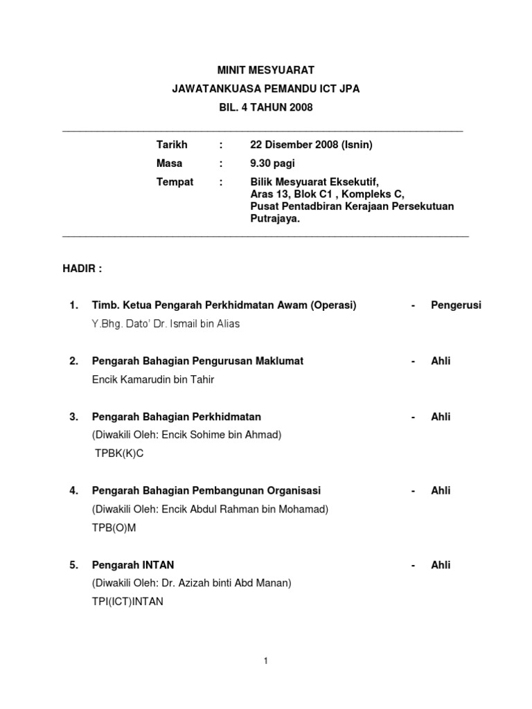 Doc Contoh Format Minit Mesyuarat Wawa Wawa Academia Edu