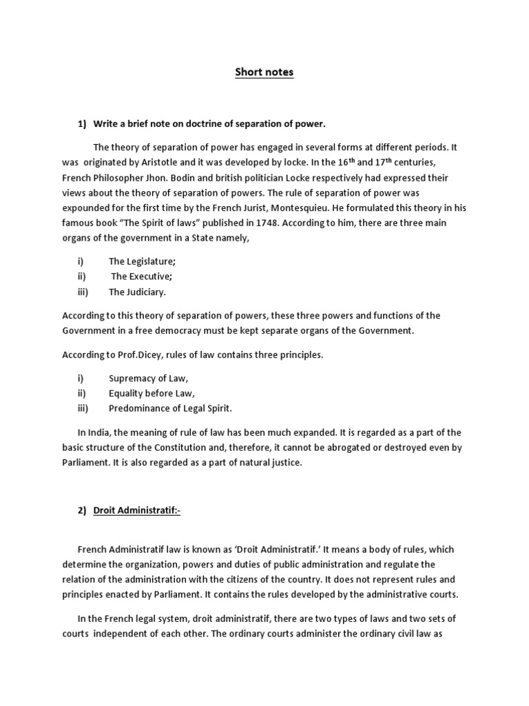 Doctrine Of Separation Of Power Administrative Law Notes Prolawctor