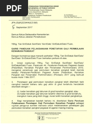 Surat Edaran Jpa S K 223 4 4jld 5 6 Docs Jpa Gov My Docs Se 2017 5 Siri No Garis Panduan Pelaksanaan Penetapan Gaji Permulaan Kenaikan Pangkat Tujuan Garis Panduan Ini