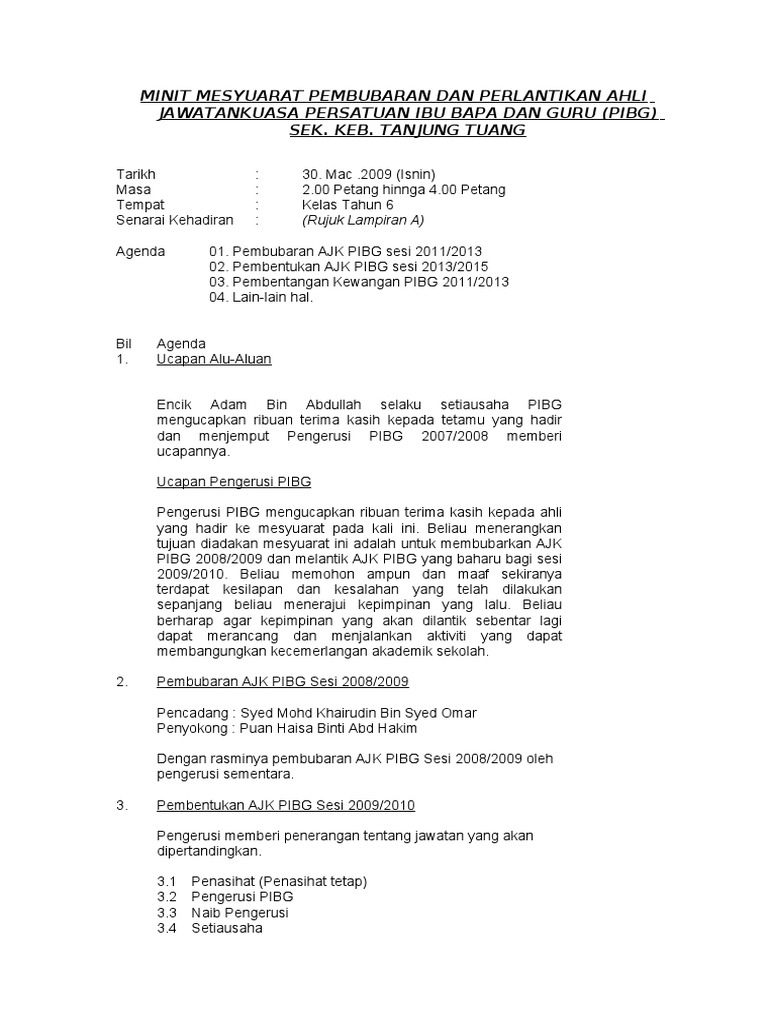 Minit Mesyuarat Pembubaran Dan Perlantikan Ahli Jawatankuasa Persatuan Ibu Bapa Dan Guru Doc