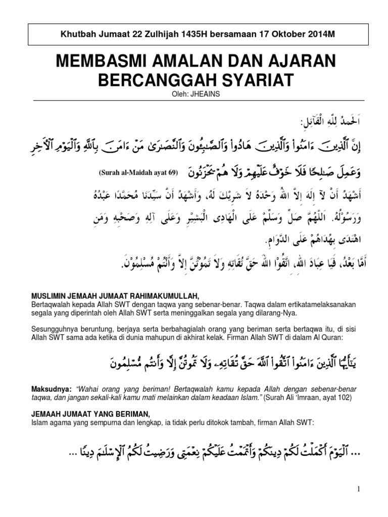 Www Jheains Sabah Gov My Downloads1 Khutbah Jumaat Tahun 2014 10 Oktober Khutbah Jumaat 22 Zulhijjah 1435h Bersamaan 17 Oktober 2014