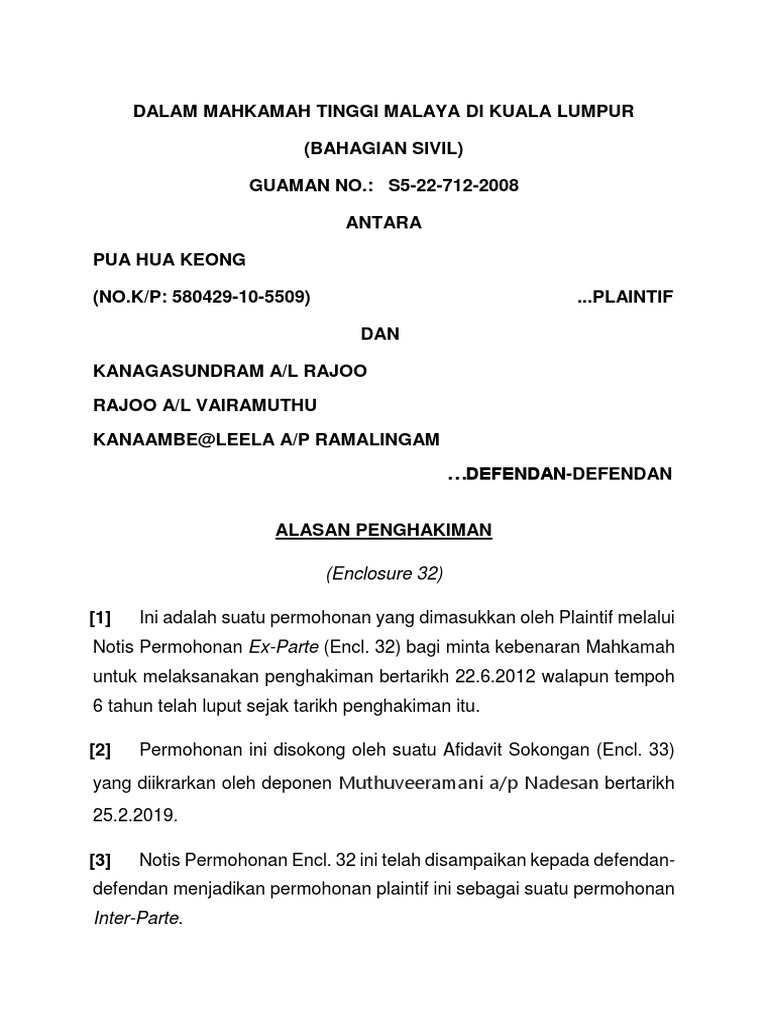 Alasan Penghakiman Kuala Lumpur Mahkamah