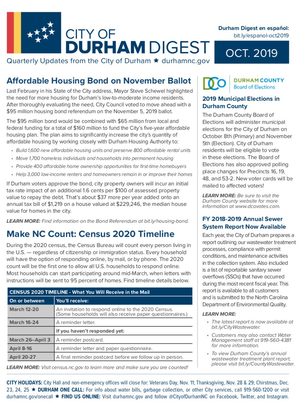 Cityofdurhamnc On Twitter Ready For Your July 2019 Edition Of The Durhamdigest If You Don T Want To Wait For It To Arrive In Your Durhamwater Bill Read It Now At Https T Co Lkk3dqplyk Or