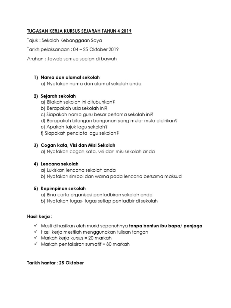 Tugasan Kerja Kursus Sejarah Tahun 4 2019