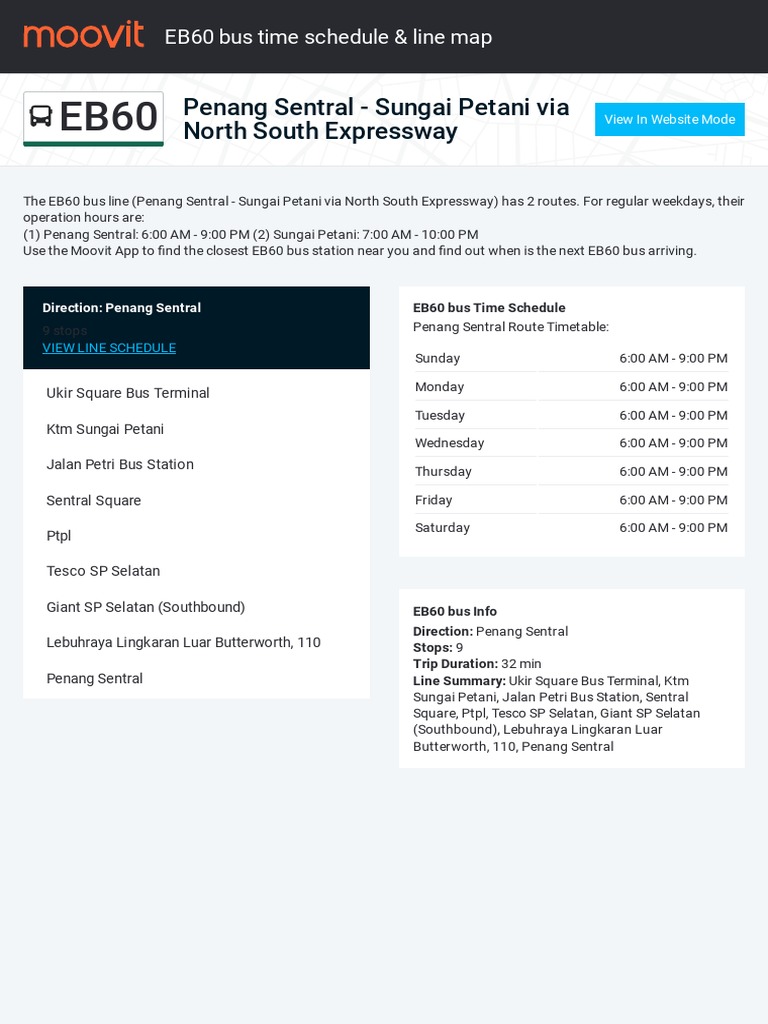 Eb60 Route Time Schedules Stops Maps B Worth Sg Petani