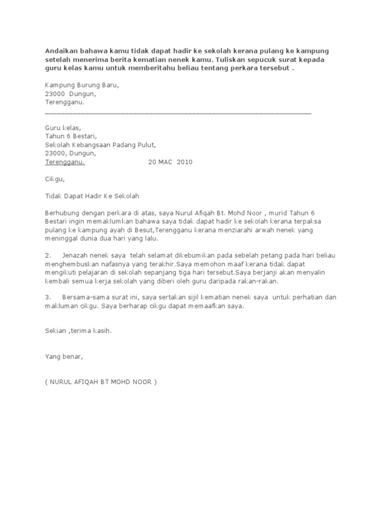 Surat Rasmi Tidak Hadir Ke Sekolah Kerana Nenek Meninggal Resepi Book F