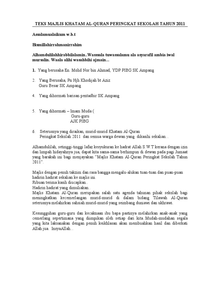 Teks Pengacara Majlis Khatam Al Quran Docx