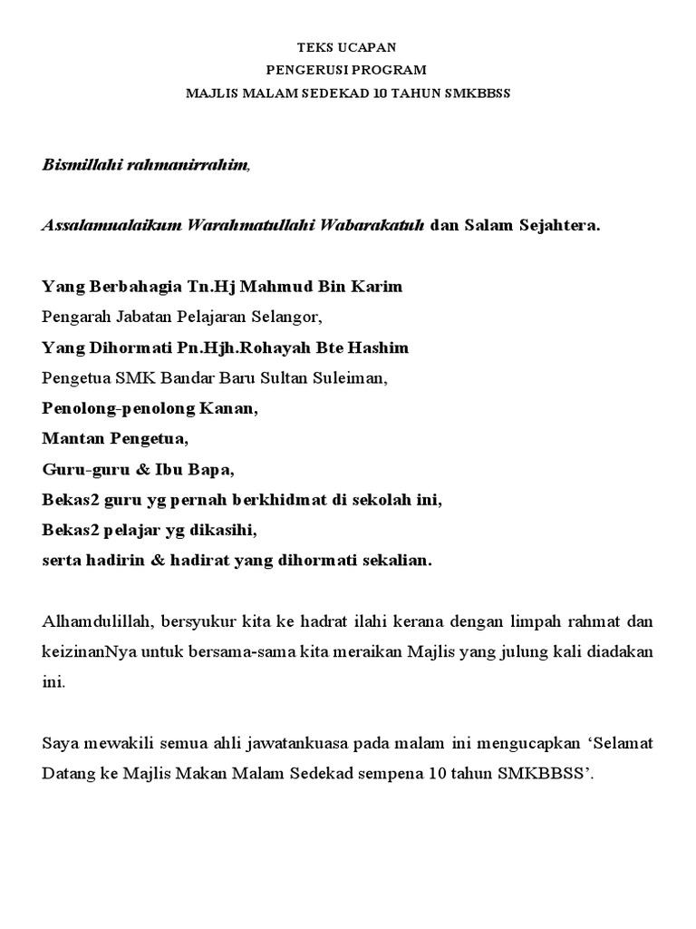 Contoh Ucapan Aluan Pengerusi Majlis Cute766