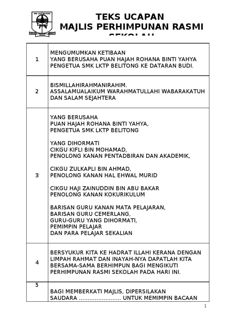 Teks Ucapan Majlis Perhimpunan Rasmi Sekolah